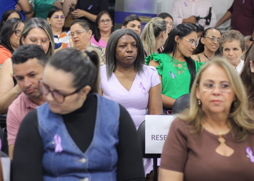 Logo após a sessão ordinária, às 19h30, foi realizada uma sessão especial em alusão ao Agosto Lilás, campanha nacional de conscientização e enfrentamento à violência contra a mulher.